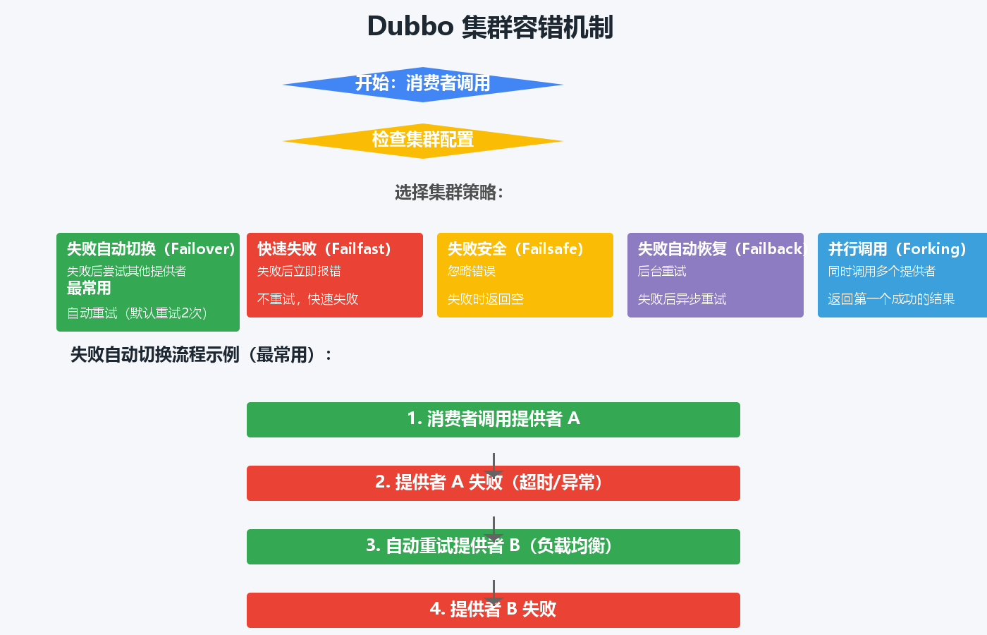 Dubbo提供多种负载均衡策略,可以根据业务场景选择:
