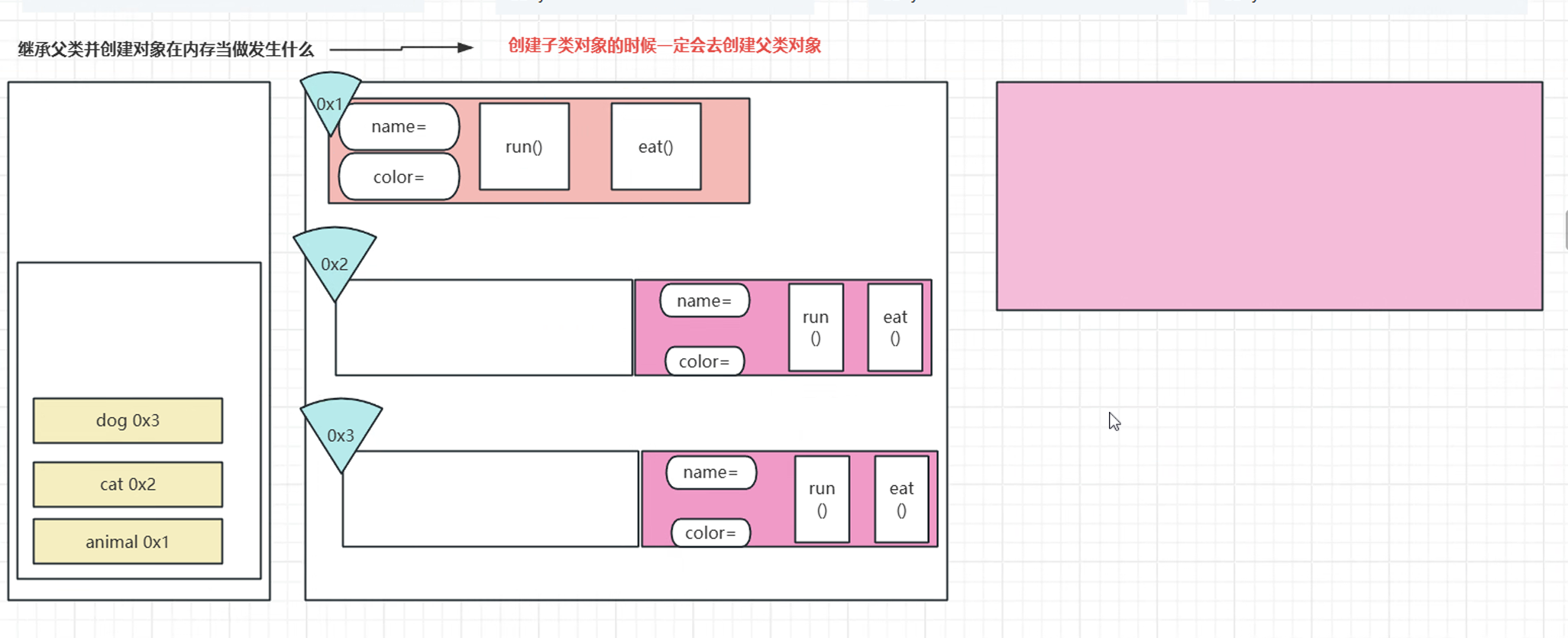 animal为父类,cat和dog分别为其子类,创建子类对象之前要创建父类对象